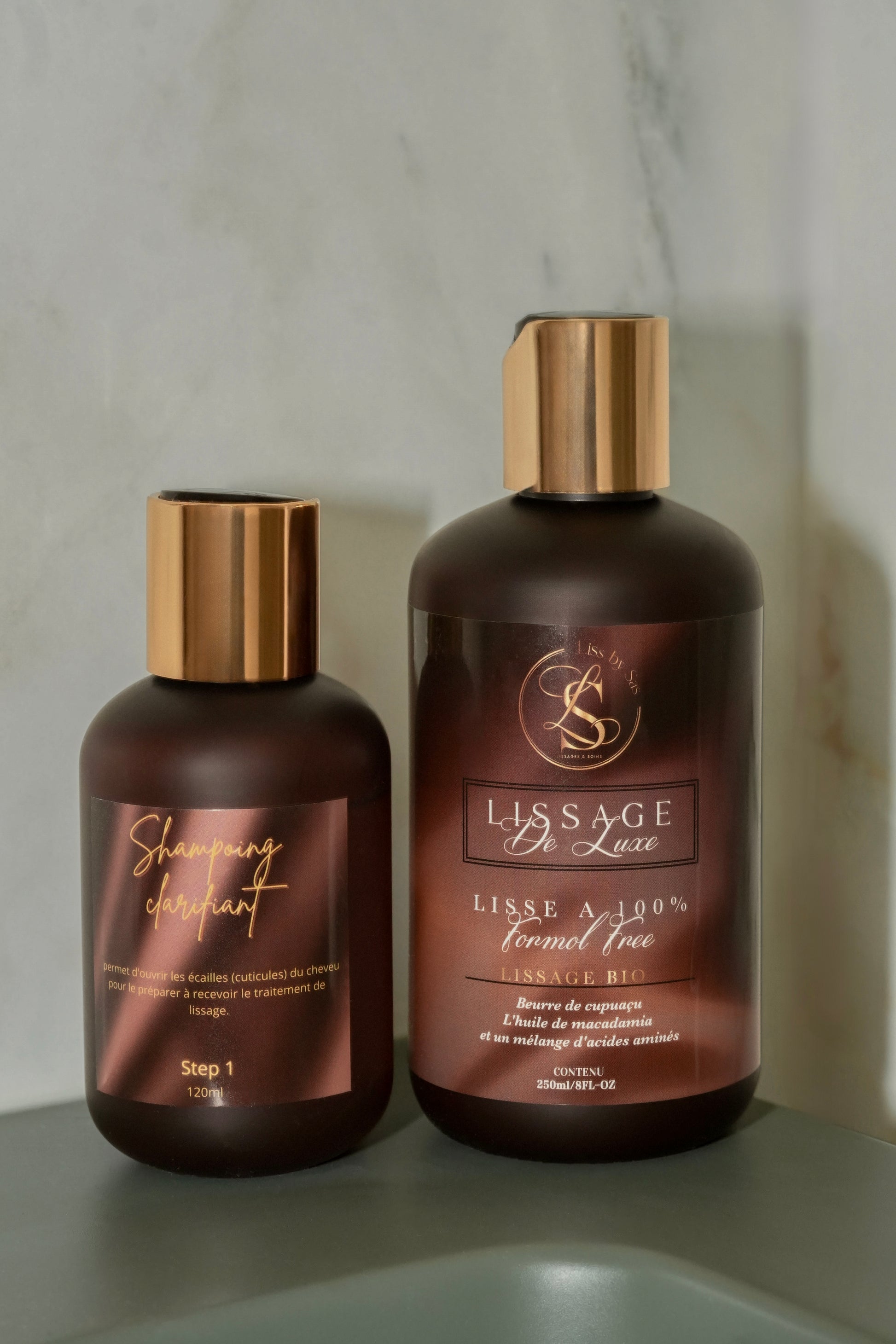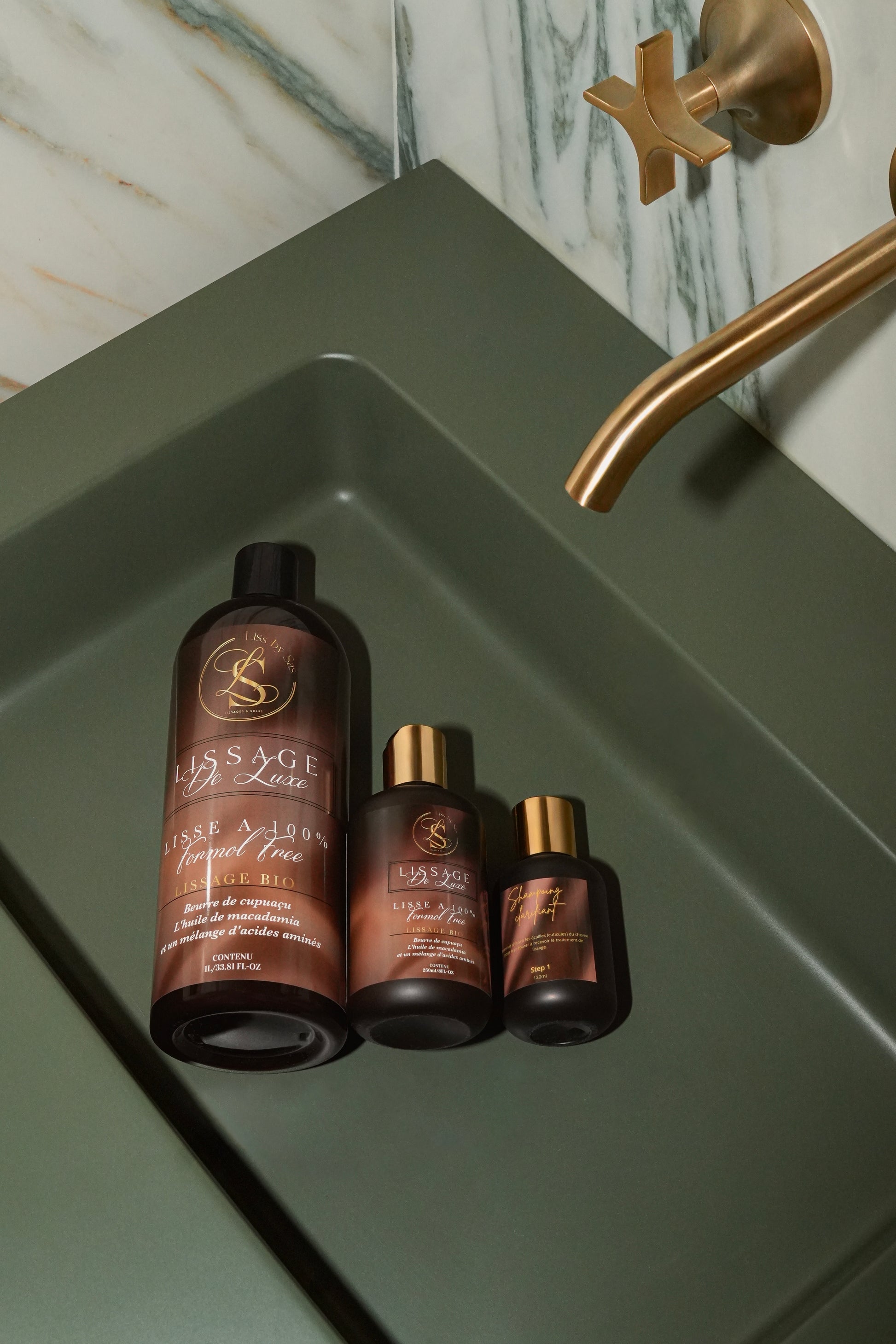 Le kit de 250 ml : Le lissage de luxe a était formulé en laboratoire au Brésil . Bio et sans formol il est composé d'huile de macadamia , cupuçao ainsi que d’acide aminés ce qui permettra une hydratation intense et une pousse des cheveux . Il laissera un finit lisse et soyeux. Ce lissage tient 6 à 9 mois avec une brillance extrême et un lisse à 100%